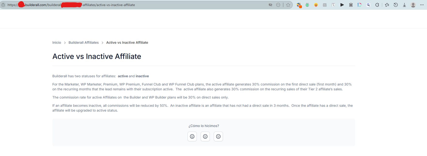 La comisión para afiliados activos en los planes Builder y WP Builder será del 30% solo en ventas directas.